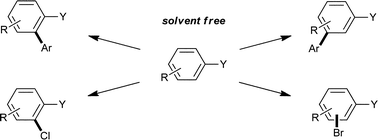 Solvent-free aromatic C-H functionalisation/halogenation reactions
